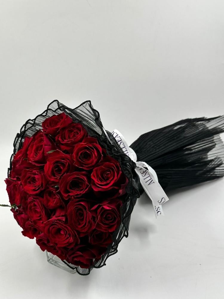 اجعل لحظاتك أكثر تميزًا مع باقة ورد روز بتصميم راقٍ يجمع بين جمال الورد الأحمر الطبيعي والتغليف الفاخر بالقماش الأسود، ما يجعلها هدية مثالية تعبر عن الأناقة والمشاعر العميقة بأسلوب فريد.