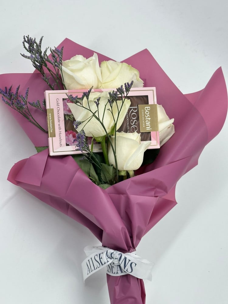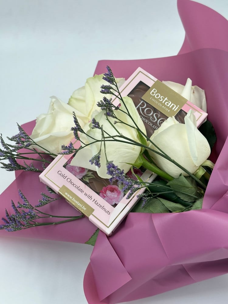 مواصفات باقة ورد مع شوكولاته بستاني :