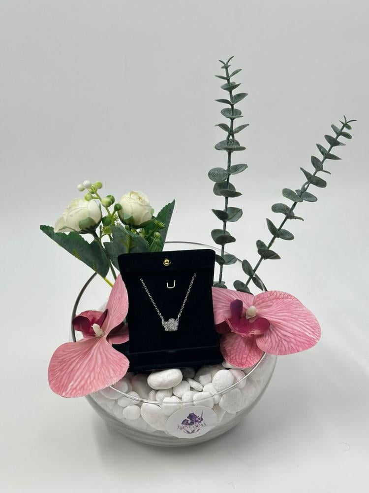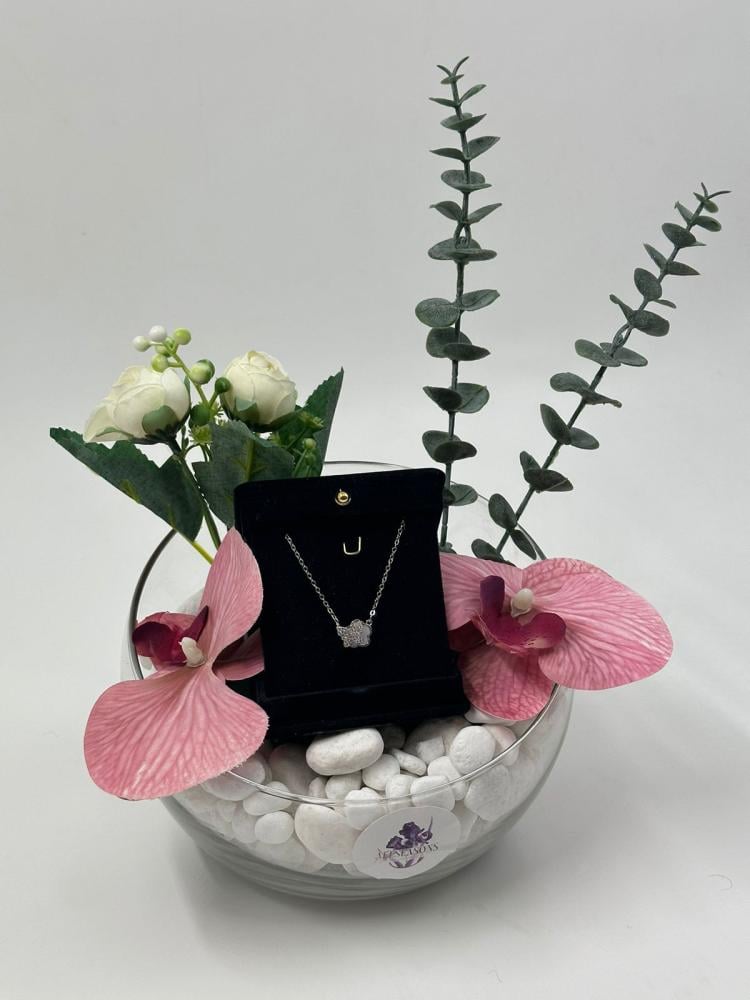 فازة تقديم ( مشطوفه ) مزين بالاحجار والورود الصناعيه
