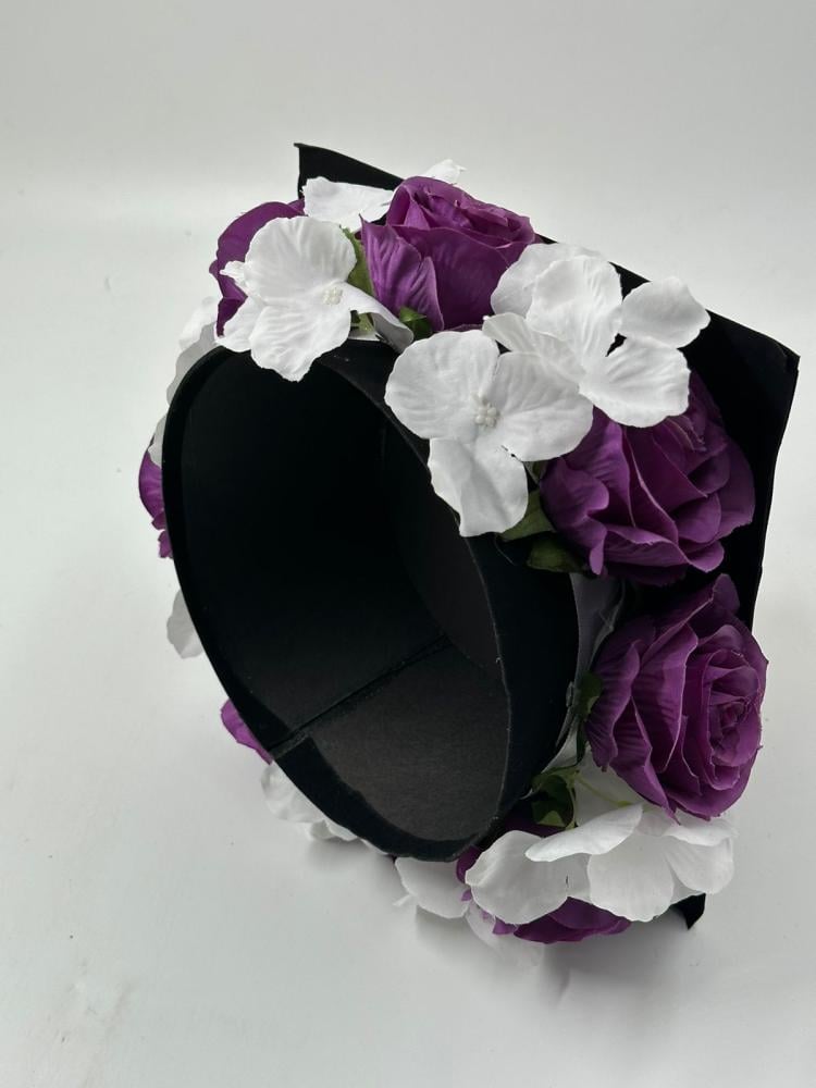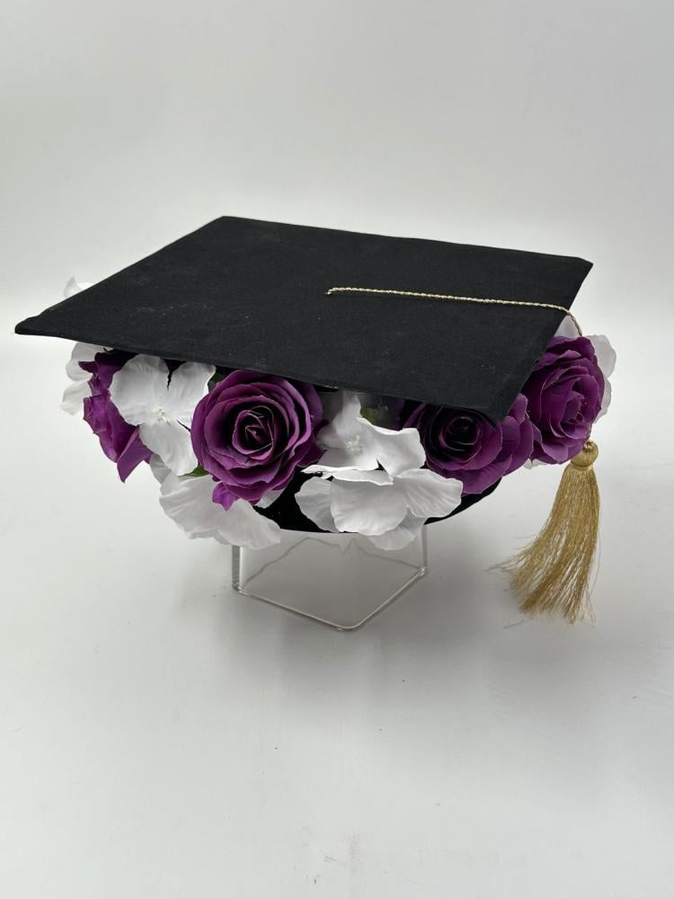 - قبعة تخرج بتصميم أنيق ومتين مغطاة بتنسيق من الورد الصناعي